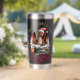 A festive and cheerful Christmas holiday design showcases a smiling red dragon wearing a Santa hat. The dragon stands behind a stack of books, engrossed in reading the top one. Beside the books are candy canes, pinecones, holly berries, and a steaming cup of cocoa. Golden stars surround the scene, while colorful text reads: "All booked for Christmas." This design is offered on a variety of products, making perfect gifts for book lovers.