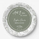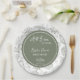 These All I Sea is Love Sage Green Seashells Paper Plates showcase a soft and elegant coastal background decorated with whimsical sage green doodles of seashells, starfish, hearts, and sparkles. At the center, a solid sage green circle outlined with a thin white inner circle displays the phrase “All I Sea Is Love” at the top, a customizable space to add the bride’s name, the wording “Bridal Shower,” a seashell illustration, and an editable event date. A beautiful, refreshing design perfect for beach, garden, or coastal-inspired celebrations, with all text and colors customizable to match your theme.