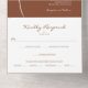 Ces invitations de mariage tout-en-un uniques sont magnifiquement imprimées et faciles à utiliser! Ajoutez simplement un cachet à la carte postale RSVP, afin que vos invités puissent remplir facilement les informations RSVP, déchirer et vous renvoyer par la poste ! Pour envoyer, vous pouvez simplement plier, sceller (en utilisant l'un des autocollants clairs inclus), adresse et courrier! Vos invités adoreront la facilité de remplir leur RSVP, déchirer et envoyer des mails ! Voir notre collection Bohemian Terracotta pour plus d'articles correspondants !