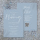 Diese elegante Skript dusty Blue Hochzeitseinladung kann mit Ihren Informationen in chic Typografie personalisiert werden mit Ihren Angaben auf der Hochzeitswebsite und Ihrem QR-Code auf der Rückseite. Entwickelt von Thisisnotme©