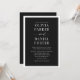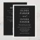 Mit dieser eleganten Schwarzen Hochzeitseinladung, die sich durch ein puristisches minimalistisches Layout mit raffinierter Typografie und einen komfortablen QR-Code für mühelosen UAWG- oder Webseitenzugriff auszeichnet, machen Sie eine kühne und zeitlose Äußerung. Das elegante schwarze Design strahlt modernen Luxus und Eleganz aus - perfekt für formale, schwarze Krawatte oder zeitgenössische Hochzeiten, die Stil und Einfachheit gleichermaßen schätzen.