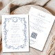 Mit diesem All In One Viktorianischen Dusty Blue QR Code Wedding Einladung schaffen Sie einen eleganten ersten Eindruck. Mit Vintag inspirierten Viktorianischen Details und einer sanften, staubblauen Farbpalette verbindet diese Einladung zeitlose Romantik mit moderner Funktionalität. Der eingebaute QR-Code ermöglicht Ihnen den einfachen Zugriff auf Ihre Hochzeitswebsite, Ihr UAWG oder Ihre Registrierung. Dieses All-in-One-Design ist ideal für formelle, romantische oder traditionelle Hochzeiten und behalte alles, was in einer stilvollen Single-Karte schön organisiert ist.