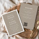 Mit dieser minimalistischen Hochzeitseinladung, die sich durch ein sauberes und modernes Layout auszeichnet, das Ihr Foto hervorhebt, und einen komfortablen QR-Code für den UAWG- oder Webseitenzugang. Die warmen Tauptöne und der subtile böhmische Stil schaffen ein perfektes Gleichgewicht von natürlicher Eleganz und Einfachheit - ideal für erdige, neutrale oder rustikal inspiriert Hochzeiten.