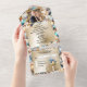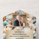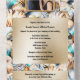 Diese elegante und stilvolle, preisgünstige Einladung hat weiche Imitate, die goldfarbene Inlays schimmern, auf denen schwarze Vorlagen für Ihre personalisierte Formulierung erscheinen. Sie sind alle gerahmt von einer Collage aus Austern-, Muscheln- und Kamelmuscheln-Muscheln, von denen einige Perlen in den offenen Muscheln liegen, die scheinbar glisten und funkeln. Die blauen, bronzenen, perlfarbenen, elfenbeinfarbenen, braunen und beigen Farben sind ideal für einen Sommer unter dem Meer; Korallenriff; tropische Insel; Küstenziel und Hochzeiten zum Thema Wassersport. Vergessen Sie nicht, ein Foto des Brautpaares in die Bildvorlage am oberen Drittel der Einladung mit einem Imitat-Goldrahmen einzufügen