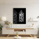 Diese Kunst ist eine wunderbare Erinnerung, die wahrhaftig "Allah ist mit den geduldigen". Weiß auf schwarzem Hintergrund entworfen, um das Licht und die Führung zu repräsentieren, die wir erhalten, wenn wir an Allah glauben. Geschrieben auf Arabisch im wunderschönen Thuluth Kalligraphie Stil; Inna Allah Ma'al Sabereen.