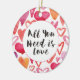 Alle, die Sie benötigen, ist Liebe-Herz-Weihnachtsverzierung mit Watercolorherzen