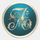 Alle Gold Monogram Aquamarin Runder Aufkleber