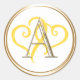 ALLE INITIALEN Gold Monogram Two Yellow Hearts Runder Aufkleber