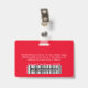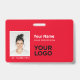 Dieses Abzeichen mit benutzerdefinierten horizontalen Mitarbeiternamen kann einfach mit Foto, Scan-Bar oder Qr-Code und Firmenlogo personalisiert werden. Ein einfaches Business-Design in allen Kaminöcken mit leuchtenden Rot- und Weißtönen für weiße oder helle Logos, vollständig anpassbar in Vorder- und Rückseite, serifenlos einfache und moderne Schriftart und ein berufliches und klares Aussehen. Diese Standard-ID-Abzeichen sind mit einem Lanyard, einer Metallklammer oder mit einer Retraktable erhältlich. Mit dem Graphic Design Editor können Sie Ihre ID-Abzeichen-Karten individuell anpassen, indem Sie eine beliebige Hintergrundfarbe und einen beliebigen Schriftart auswählen. Keine Mindestbestellung.