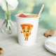 Pizzaschnitt im Stil eines Cartoon mit Daumen.