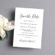 Moderne und einfache Ankündigung Datum freihalten Karte mit "Save the Date für uns glücklich, immer wieder" in einer Mischung aus einfacher Typografie und einem stilvollen Drehbuch, das Ihr Foto überlagert. Geben Sie Namen, Datum und Ort ein. Auf der Rückseite können Sie weitere Details angeben und Ihre Namen in ein signaturartiges Skript einfügen.