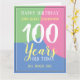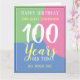 Feiern Sie einen Geburtstag mit einer personalisierten Karte, die den Namen, die Anzahl der Jahre und das Datum des Empfängers anzeigt. Fügen Sie auch eine Nachricht hinzu. Geburtstagskarte für 100 Jahre.