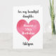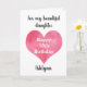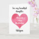 Eine glückliche 16. Geburtstagskarte mit einem hübschen Aquarellherz. Man kann diese Tochter-Geburtstagskarte mit ihrem Alter im Herzen und ihrem Namen unter dem Herzen personalisieren. Die Geburtstagskarte im Inneren lautet "Ich hoffe, dass heute und Tag mit viel Liebe, Lachen & Spaß gefüllt ist. Ich Liebe dich, immer. Alles Gute zum 16. Geburtstag!" Die Kartenmeldung kann leicht bearbeitet werden. Auf der Rückseite dieser personalisierten Geburtstagskarte heißt es Happy Birthday.