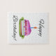 Eine illustrierte Scheibe des Geburtstagskuchens mit einer Kerze und Text alles Gute zum Geburtstag!