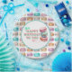 Niedliche Aquarellfarbe Rosa und aquamarine Makaronen mit einem Vintagen Ansehen Happy Birthday Papier Teller.