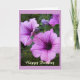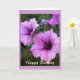 Petunien in den Rosa grüßen die Empfänger mit alles- Gute zum Geburtstagwünschen. Schrifts- und Versinnere beziehen sich Segen.