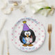 Alles Gute zum Geburtstagpenguin-blauer u. rosa Pappteller