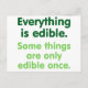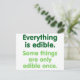 Illogische Logik und eine alberne Aussage, die Sie zum Lachen bringen wird. Reads "Alles ist essbar. Manche Dinge sind nur einmal essbar."
