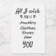 Ich brauche keinen Schmuck, keine Kleidung, Schuhe und Autos. Alles, was ich mir wünsche, sind Sie. Einzigartiges und lustiges Design. Eine perfekte Ergänzung für Kleidung, T - Shirt, Accessoires und andere Sachen. Tolle Geschenkidee.