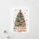 Ein festliches und fröhliches Weihnachtsdesign zeigt einen Stapel Bücher, die als Weihnachtsbaum angeordnet sind und mit bunten Lichtern geschmückt sind. Schneeflocken aus Glitterie-Imitaten umgeben den Buchbaum und fügen eine magische Touch hinzu. Die Imitate glitzern: "Alles zu Weihnachten gebucht." Dieses reizvolle Design steht für eine Reihe von Produkten zur Verfügung und ist somit ein perfektes Geschenk für Buchliebhaber.