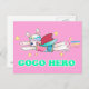Dans mon illustration, l'humanité est sauvée par beaucoup de héros : un enfant mettant sur des costumes héroïques, une fille magique, et de petits lapins également préparés comme des héros. Go vont héros !