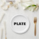 Perfekte Platte für Ihre trendige generische Themenparty! Alle Nervenkitzel machen keinen Spaß. Nur das Wort PLATE in schlichtem schwarzem Text.