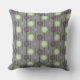 Floral lance l'oreiller avec un motif de fleurs d'allium rond en violet, lavande et blanc crémeux sur un arrière - plan vert agréable. La fleur d'allium, aussi appelée oignon fleurissant, symbolise l'unité.