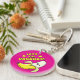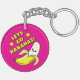 Porte - clé adorable, avec un dessin animé mignon, banane jaune kawaii joyeux avec les sourires les plus doux, grands yeux ronds et à moitié pelée. Au-dessus de lui, en lettres jaunes avec une ombre noire sur laquelle on peut lire 'Lets Go Bananas ! ' Deux étoiles jaune vif sont de part et d'autre des mots.