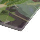 Das Originalmuster auf diesem 15"x11" Schneidebrett entstand aus einem Originalfoto von HomeWare eines Zweiges eines Mandelbaumes. Der Baum ist in Sonnenlicht und Schatten, und das Foto zeigt die Mandelhüllen nah nach oben, während sie aus der Mitte eines Laubhaufen entstehen. Das Foto wurde dann wiederholt, um das Gesamtbild zu bilden. Die natürlichen Farben der Nüsse und Blätter machen ein schönes, grünes Design.