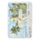 Aloha! Träumen Sie Landschaft mit einem Mädchen, das uns zum Surfen einlädt und Spaß, Sport, in voller Freiheit. Zeichn erstellt mit der Computergrafik 3d 2d.
