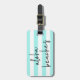 Mit unserem schicken personalisierten Gepäckanhänger am Strand grüßen Sie den Sommer. Das helltürkisfarbene Aqua-Blau und Weiß gestreifte Design zeichnet sich durch "Aloha Beach" aus, die in einer frischen handgeschriebenen Schrift mit drei Textzeilen auf der Rückseite für Ihren Namen und Ihre Kontaktinformationen dargestellt sind.