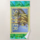Aloha Summer. Jolie scène tropicale pour les chaudes journées d'été. Aloha Summer est écrit dans un script amusant jaune ensoleillé dans un cadre de trois palmiers avec des frondes soufflant dans la brise océanique avec le ciel bleu. Arrière - plan a carrelé motif dans les tons bleu vert. Cool pour homme ou femme. Photographie originale © TamiraZDesigns.