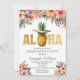 Hawaiian Graduation Party Einladung Das spielerische Design verbindet das hawaiianische Strandthema "aloha" mit dem feierlichen Abschluss Motiv für eine lustige und fröhliche Ankündigung. Die Ananas-Graduiertengrafik bildet einen niedlichen, lichtdurchfluteten Mittelpunkt, umgeben von üppiger Vegetation und kühnen Blüten. Ideal, um einen Gymnasium oder einen Uni-Abschluss mit einem luau oder inselinspiriert Pool-Party zu feiern. Die hellen Farben und tropischen Blumen schaffen ein auffallendes, sommerliches Design.