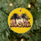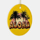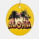 "ALOHA" in Sonnenuntergangsfarben, kombiniert mit Silhouetten von Palmen. Fühlen Sie sich frei, etwas Text hinzuzufügen.
