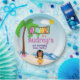 Tropischer Strand Luau Geburtstagsfeier Teller, mit niedlichen Hula Mädchen, Palmen und Strand-Szene, mit leicht anzupassen Text. Vervollständigen Sie Ihre Sommerveranstaltung mit diesem individuellen Schild, ideal für Kinder oder Erwachsene.