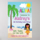 Tropischer Strand Luau Geburtstagsfeier Poster, mit niedlichen Hula Mädchen, Palmen und Strand Szene. Dieses Zeichen kann leicht in die 20 x 30 oder 24 x 36 Größen konvertiert werden, ohne dass der Text leicht angepasst werden kann. Vervollständigen Sie Ihre Sommerveranstaltung mit diesem individuellen Schild, ideal für Kinder oder Erwachsene.