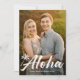 Moderne, tropische Urlaubskarte mit dem "Aloha" in weißem, handgeschriebenem Foto, ergänzt durch eine handgezeichnet Palme. Personalisieren Sie die Vorderseite der Aloha-Urlaubskarte, indem Sie Ihren Namen hinzufügen. Die Karte kehrt zu Leerzeichen um, um einen zusätzlichen Foto und benutzerdefinierten Text mit weißen Ozeanwellen auf hellgrau-blauem Hintergrund zu erhalten. Entworfen, um mit unserer Ferienkollektion Aloha Palm Tree zu koordinieren.