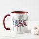 Un imprimé vintage hawaïen de chemise aloha en combinaison avec un drapeau américain pour créer ce graphique encadré de palmiers. Customisez ce design sur votre tasse préférée.