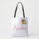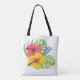 Genießen Sie Ihren Strand- und Poolaufenthalt in einer stilvollen und unterhaltsamen Tasche. Aloha wird Sie in den Geist des Ozeans und der Insel Zeit. Auf der Rückseite mit einem großen Set Hibiskus und Grün.