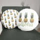 Aloha ! Tous les ananas qui vous attendent sur cet oreiller tropical rond. Double face vous pouvez modifier le texte et ajouter une couleur arrière - plan