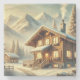 Alpine inspirierte Winterlandschaft mit gemütlichem Chalet umgeben von schneebedeckten Bäumen und majestätischen Bergen. Ideal für rustikale Dekoration, saisonale Kunst und Urlaubsstiftung!