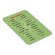 Ein lustiger Magnet mit einem Alphabet für Läufer. 26 Buchstaben des Alphabets mit einem laufenden Wort oder einer Phrase für jedes einzelne. In schwarz und rot auf einem weichen grünen Hintergrund, der auch die Silhouette eines Läufers hat.