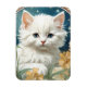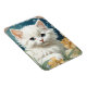 Magnet mit einem Kätzchen im Jugendstil von Alphonse Mucha! Weiß und flauschig mit blauen Augen Posen mit gelben Blumen. Ein niedliches Geschenk für Katzenliebhaber und Jugendstilsammler!