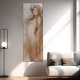 Dieses wunderschöne Poster zeigt eine Skizze, die auf Alphonse Muchas Bleistiftskizze aus dem Jahr 1897 basiert und ursprünglich als Kalenderdesign entworfen wurde. Der Kalender wurde jedoch entfernt, und die Skizze wurde zu einem beliebten dekorativen Panel, das unter dem Titel "Evocation" im Jahr 1898 verkauft wurde. Die Skizze stellt eine schwimmende Frau in einem leichten Kleid dar, das in zarten Skizzen dargestellt wird und Muchas einzigartigen Stil zeigt. Der zeichnend vereint Muchas verträumte Vision eines spirituellen Wesens, ein Motiv, das er seit den frühen 1890er Jahren verfolgt. Interessanterweise war Mucha während dieser Zeit dem Pariser Spiritualenkreis nah und beteiligte sich oft an psychischen Experimenten in seinem Studio mit einem Medium. Der starre Blick und die starre Haltung der Frau zeigen den Einfluss solcher Experimente.