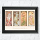 Ein schönes Jugendstil-Poster mit der Illustration, The Seasons (1900), von der tschechischen Künstlerin Alphonse Mucha (1860-1939). Vier Modeportraits mit Frauen, die Herbst, Winter, Frühling und Sommer personifizieren. Zwei Blume, eine Schneefrau und eine Herbstfarben mit einem Äpfelteller.