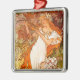 Ornament mit Alphonse Muchas farbithographischer Feder (1896). Eine schöne Frau in einem weißen Kleid spielt eine Lyrik unter einem blühenden Baum. Ein wunderbares Geschenk für Jugendstilfans und tschechische Kunstsammler.