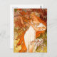 Postkarte mit Alphonse Muchas Farblithographie Frühjahr (1896). Eine schöne Frau in einem weißen Kleid spielt eine Lyrik unter einem blühenden Baum. Ein wunderbares Geschenk für Jugendstilfans und tschechische Kunstsammler.