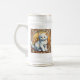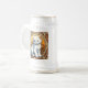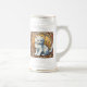 Bier Stein mit einer Katze im Stil von Alphonse Mucha! Dieses flauschig weiße Kätzchen sieht den Betrachter bewundernswert an. Blume schmücken die Szene. Ein puristisches Geschenk für Katzenliebhaber und Jugendstilsammler!
