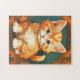 Puzzle mit einer orangefarbenen Katze im Stil von Alphonse Mucha! Dieses hübsche Kätzchen mit grünen Augen ist von Herbstblättern gerahmt. Ein wunderbares Geschenk für Katzenliebhaber und Jugendstilsammler!