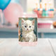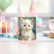 Can Glass mit einer weißen Katze im Stil von Alphonse Mucha! Diese blaue mit Augen, flauschige Pose mit rosa Blume und blauen Decken. Ein fabelhaftes Geschenk für Katzenliebhaber und Jugendstil-Sammler!